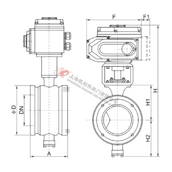 VQ977(H/FY)對夾式電動V型球閥外形參數及連接尺寸
