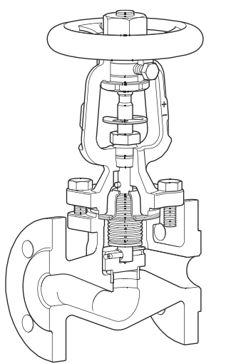 波紋管截止閥是由截止閥演變而來,在截止閥的基礎(chǔ)上加上波紋膨脹管,在一些高溫系統(tǒng)管路中作為開關(guān)的一種特殊閥門,具有較高的密封性能,特殊的波紋管密封結(jié)構(gòu)使其廣泛用于導(dǎo)熱油管路系統(tǒng),蒸汽管路系統(tǒng),依靠波紋管的熱漲冷縮原理,在溫度高于300度以上的管路上使用,效果最佳。