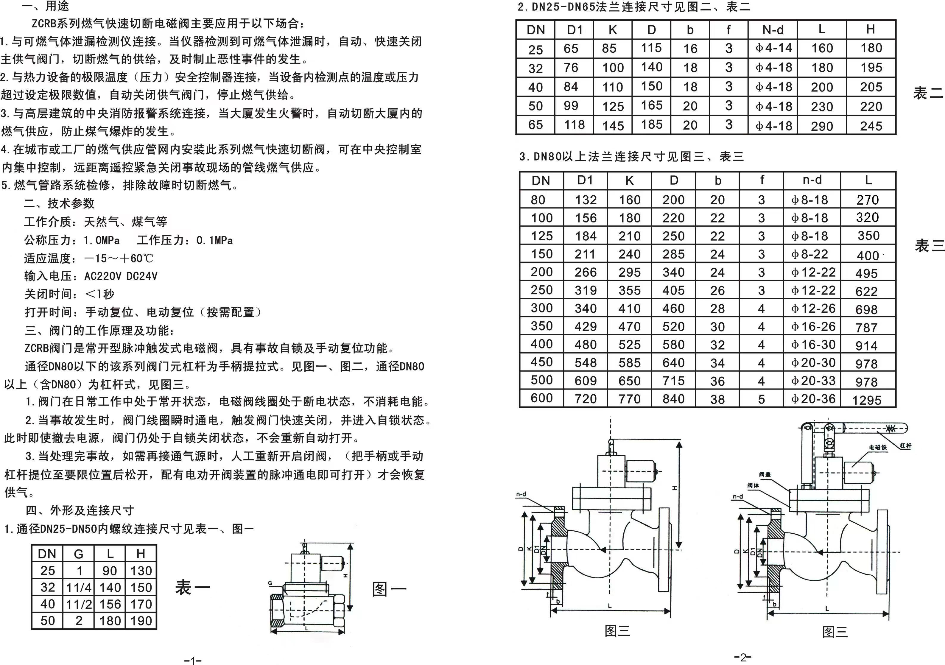 燃氣電磁閥,燃氣緊急切斷電磁閥說明書